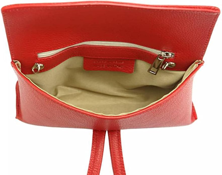 FLORENCE LEATHER Market Handbag with Leather Strap for Women 22 x 5 x 11 cm – Rosita – Made in Italy (Red)